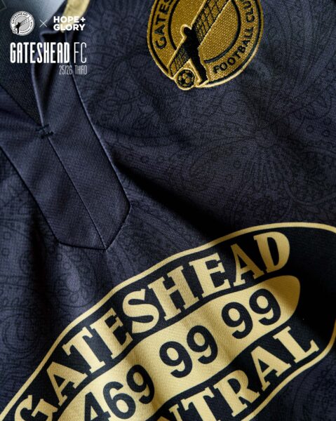Created by Technical Kit & Online Retail Partners HOPE + GLORY, the new third shirt features a bespoke paisley pattern incorporating the Angel of the North, an icon synonymous with both the Borough of Gateshead and Gateshead FC.